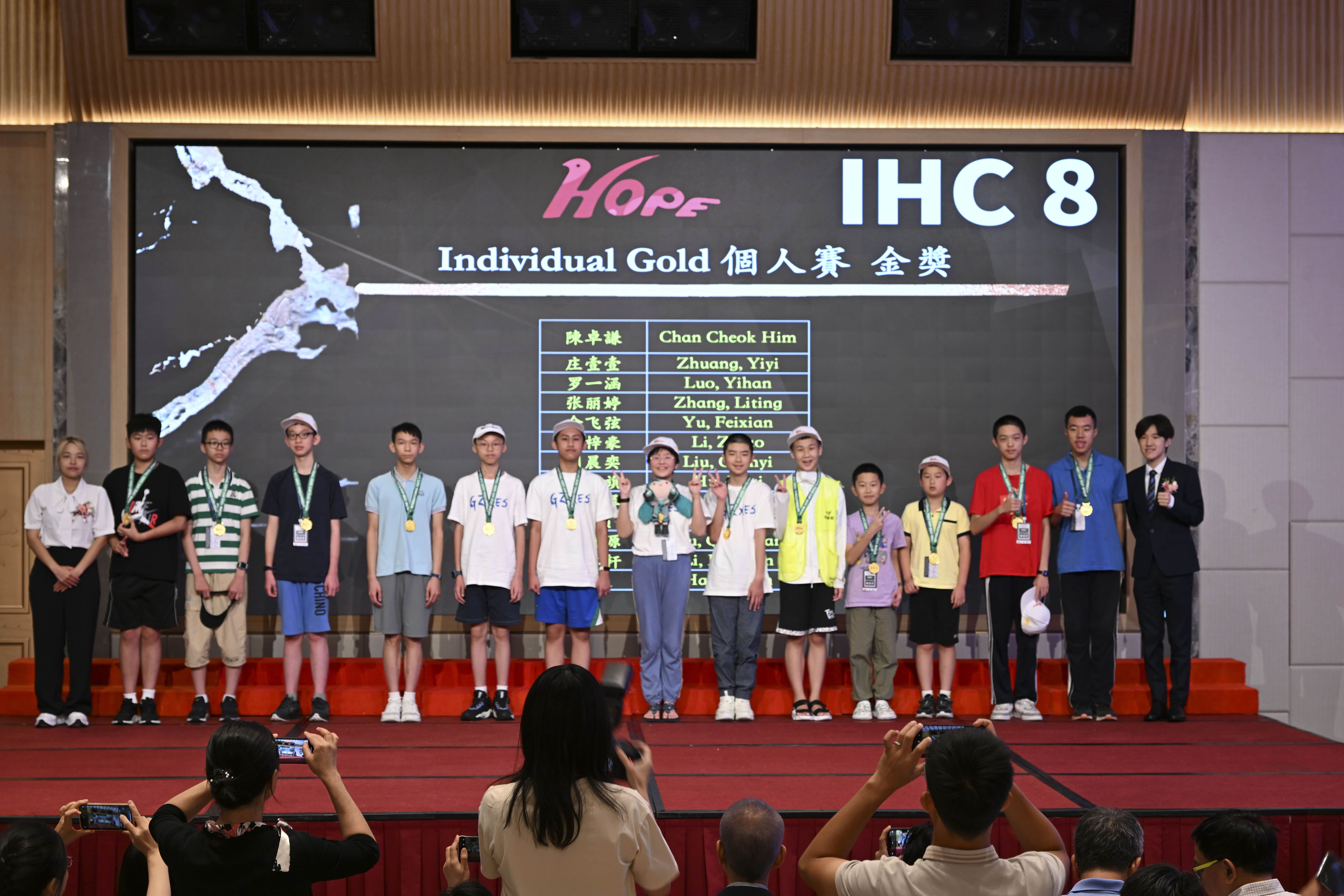 Esteemed representatives from institutions including the Macau Science Centre, Macau Legislative Assembly, University of Macau, and City University of Macau were present at the award ceremony. Dr. Kou Seng Man, President of the International (Macau) Institute of Academic Research, emphasized that by organizing the Mathematics Global Peak Challenge, they further actualize educational policies, continuously drive and pioneer innovations in mathematical education, enhance its widespread accessibility and evolution, stimulate the numerical interest of the youth, and propel the ascent of Macau's mathematical education. The ceremony was attended by nearly a thousand students, parents, and educators. It recognized winners across various categories, awarding group champions, runners-up, third-place winners, and individual gold medalists. Roughly four hundred individuals were bestowed awards in the solo category, while sixty-six teams were recognized in the team division. The distinguished guests presented all awardees with exquisite trophies, medals, and certificates.